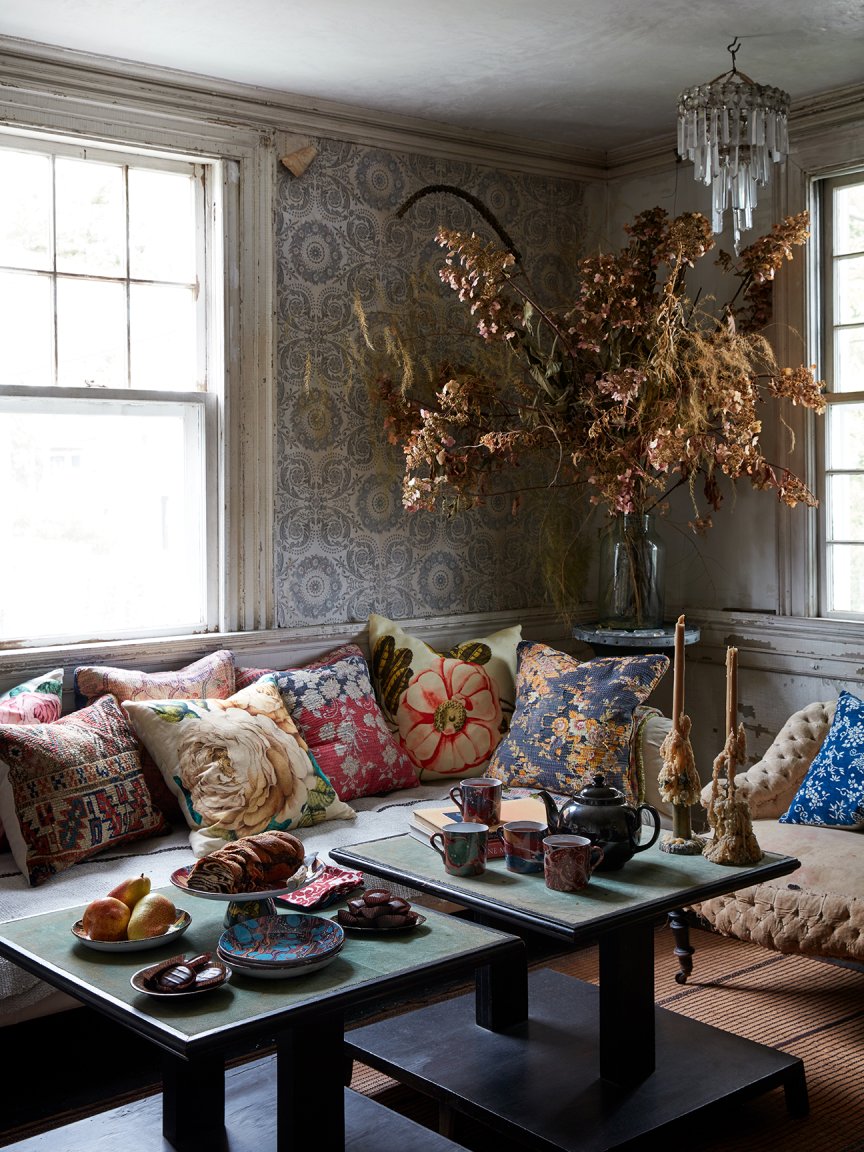 Like many deviations from style norms, at first it appears unorthodox, but the more you think about it, the more obvious it seems: Why not have a cozy, soft-backed place to sit in the warmest room in the house? Perhaps unsurprisingly, artist and designer John Derian, a favorite of Meyers, also has a sofa in the kitchen of his Provincetown, Massachusetts, vacation home. O’Keeffe’s and Derian’s unexpected seating choice is not only stylish and approachable but also practical—a unique combination.