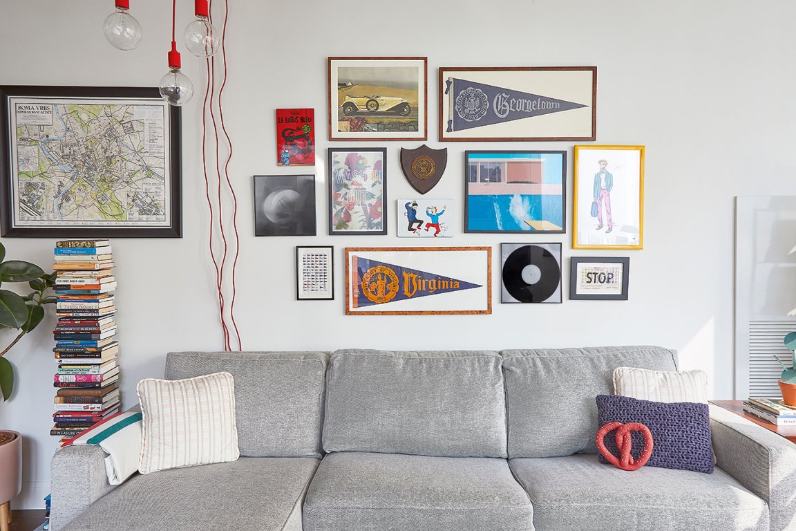 Over the years I’ve collected many plaques and honors (read: film posters and pictures) to display on my gallery wall. In previous homes I laid them out on the floor to see how they all looked together to determine the best layout. The course on art styling recommended going one step further: cutting out pieces of paper (or strips of painter’s tape) in the shape of each work and taping them on the wall. This way you’ll be able to see its size compared to the rest of the room, too.