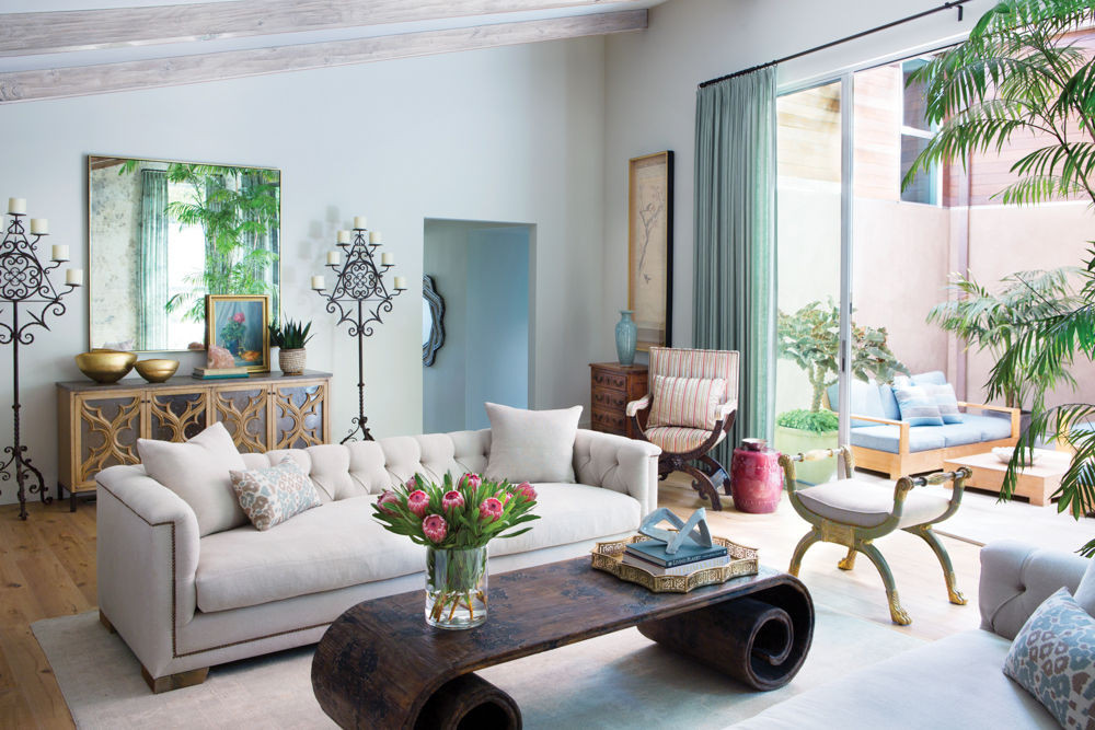 This living room embraces spring’s go-to hues with gorgeous pastel pieces.