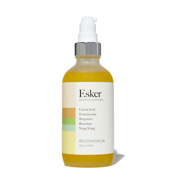 So much oil: One of the last steps in this ridiculous but relaxing routine is putting body oil—either Esker Beauty Restorative Oil or coconut oil—on my breasts and stomach. Being pregnant twice in two years is hard on the skin, so I’m obsessive about oil. Any oil. Lots of it.