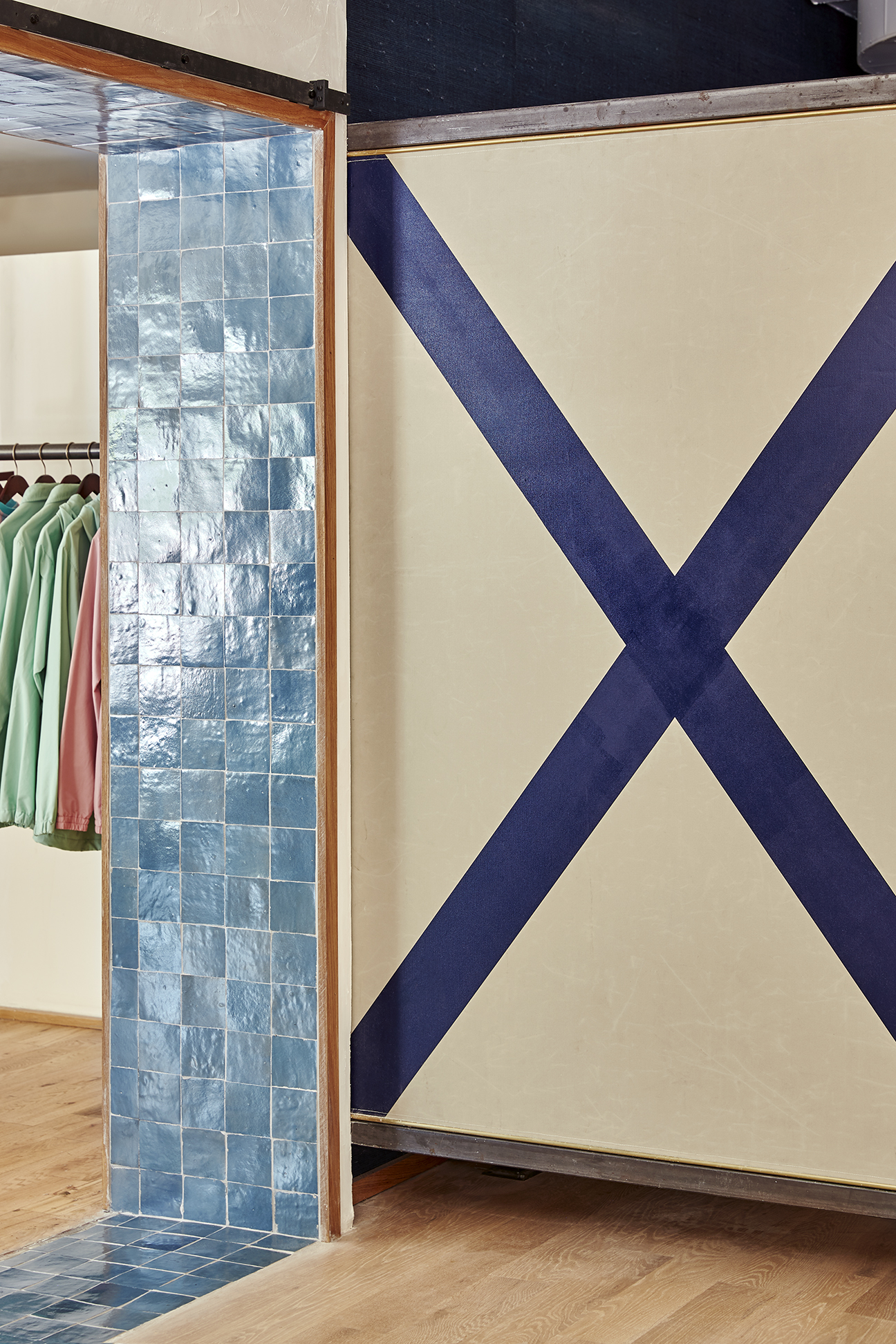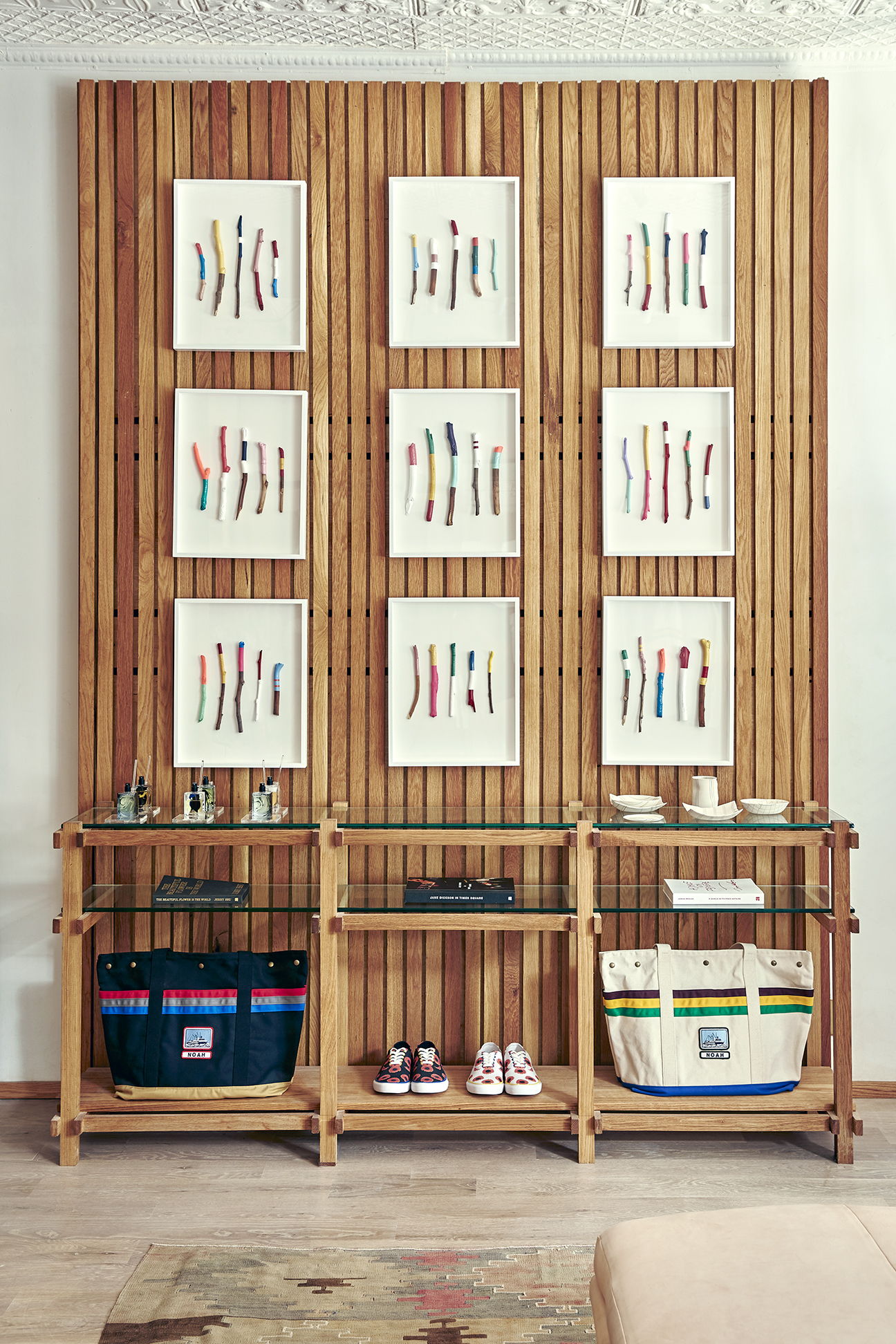 As proof: The expansion of the store this summer included adding a tea bar that serves two flavors on the house, as well as an art gallery wall with rotating exhibitions (first up was work by Louis Philo, Phoebe Philo’s brother) set among preppy nautical–meets–Caribbean cool streetwear and pattern-forward suiting. A cross-section of hip-hop, reggae, rock-and-roll, even some classical music scores the scene. As Bailey-Babenzien rightly puts it: “I’m an architect of experience.”