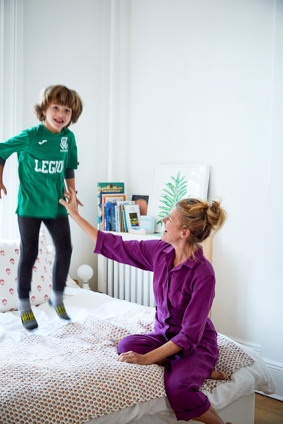 When they start to feel like they’re on top of one another, the Waterfields will head to nearby Prospect Park or pop out to the stoop for some fresh air (something Bodhi can do on his own). “As Emmy gets to be a teenager, she’s wanting a bit more privacy,” says Waterfield. “She’s learning to slam her sliding door.”