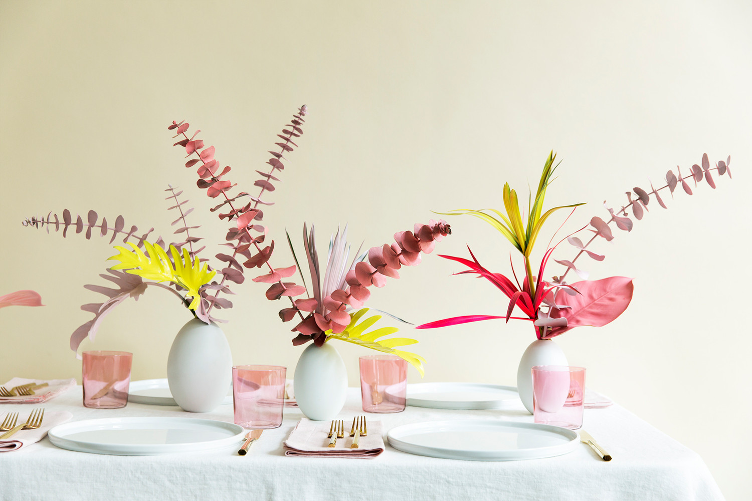 Finding florals to complement a set color scheme or aesthetic can prove to be tricky. The fix? Spray-painting filler greens and eucalyptus leaves to achieve a palette of your choosing—find out how here.