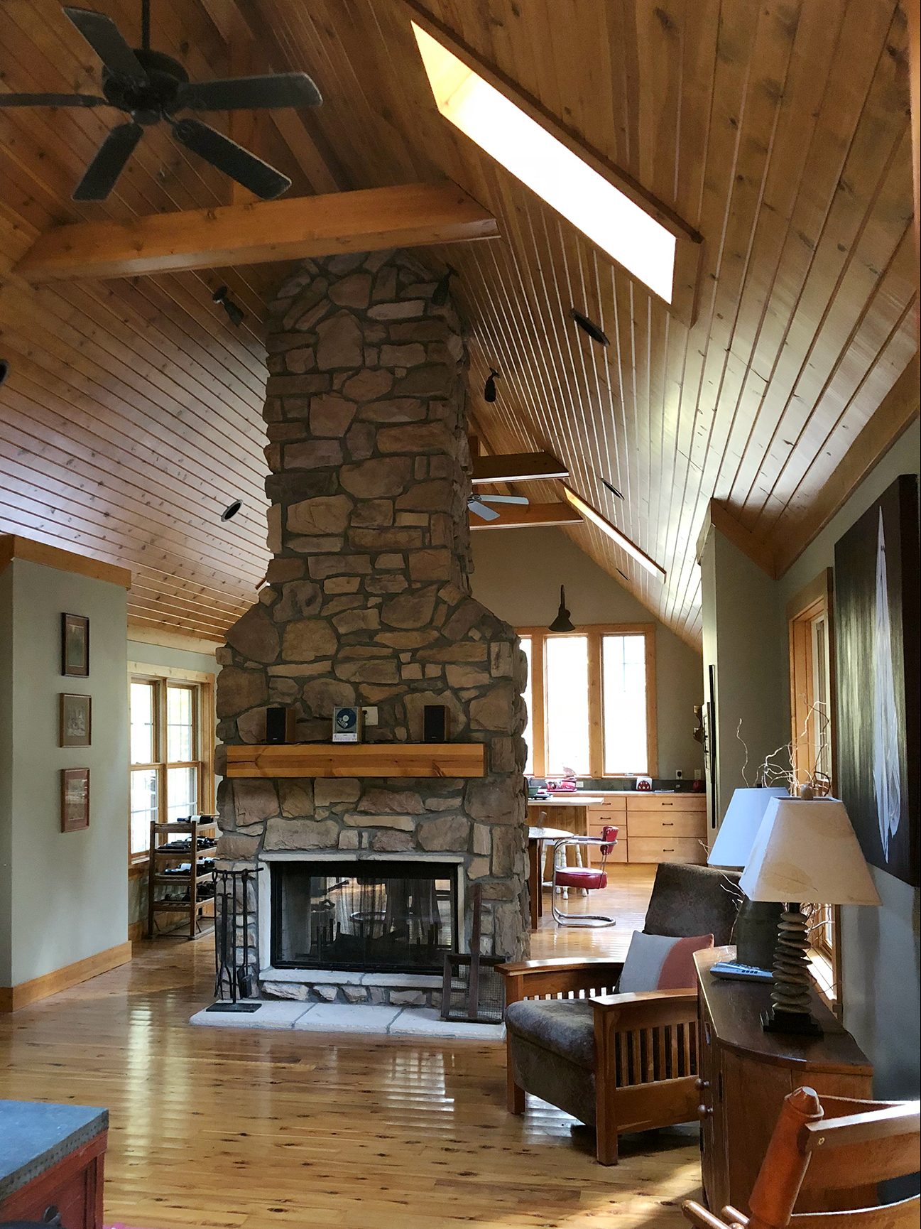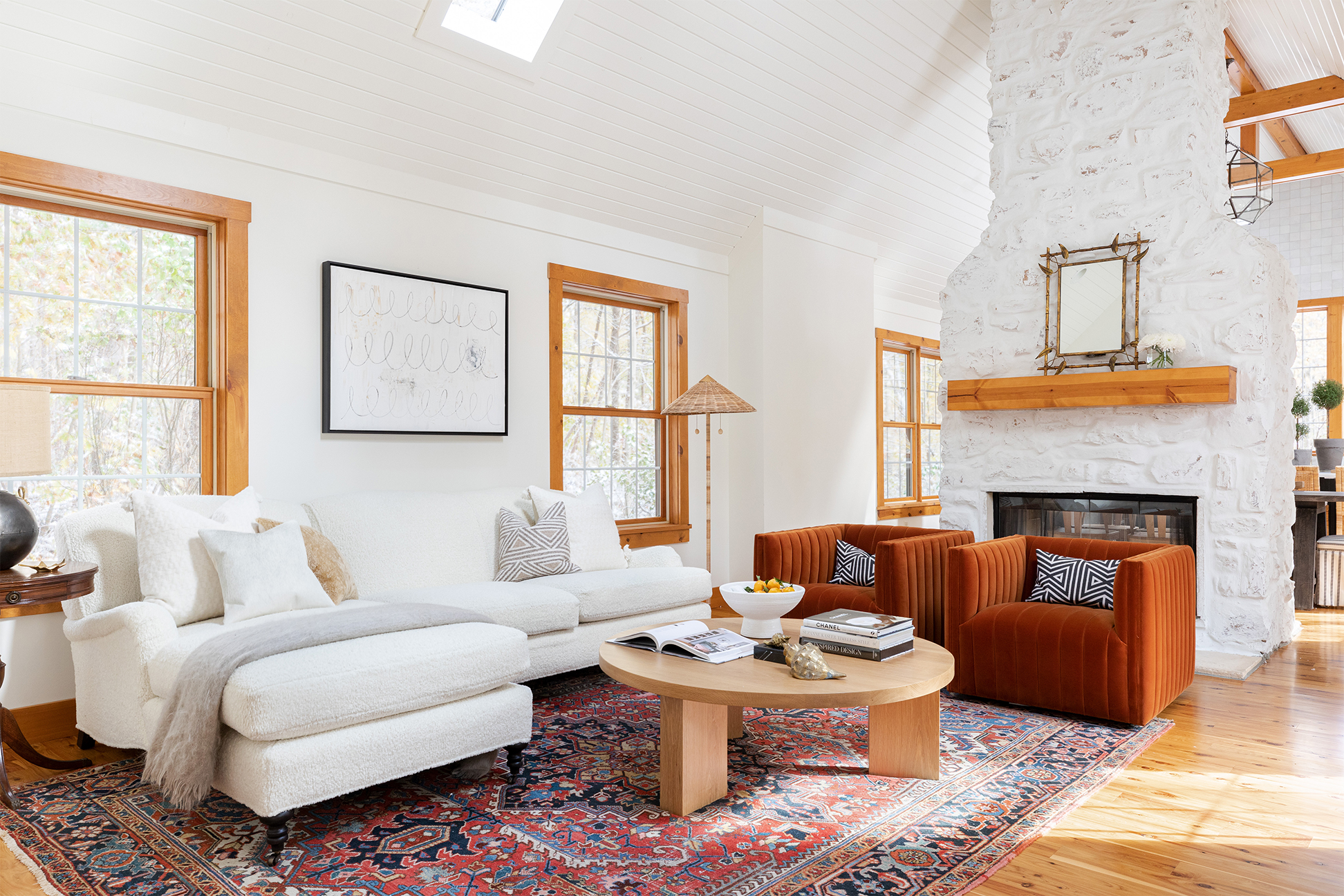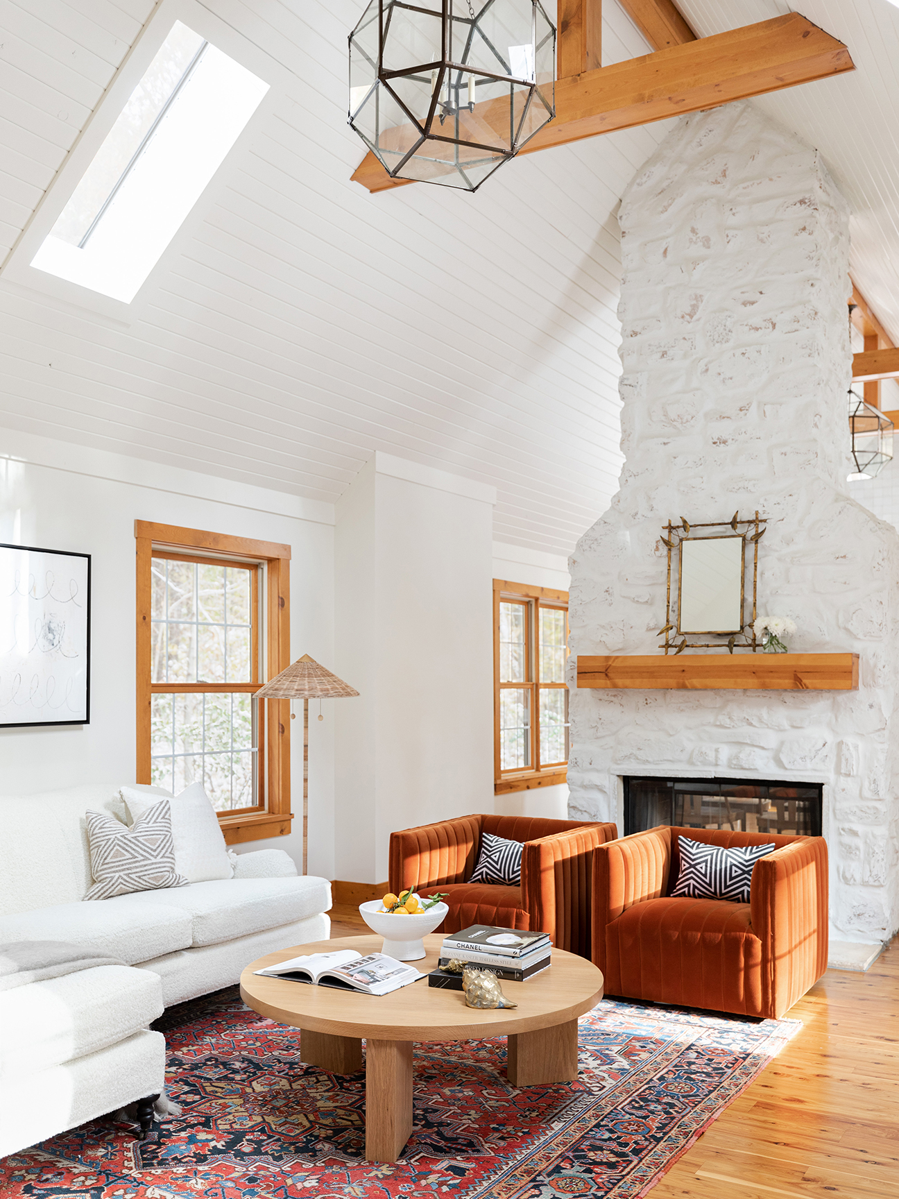 Barker and her husband bought the home in Three Oaks, Michigan, as a fixer-upper that would serve as a retreat for their family. Transforming the dated—we’re talking linoleum floors and wall-to-wall carpeting—A-frame into a light and breezy enclave was no easy feat.