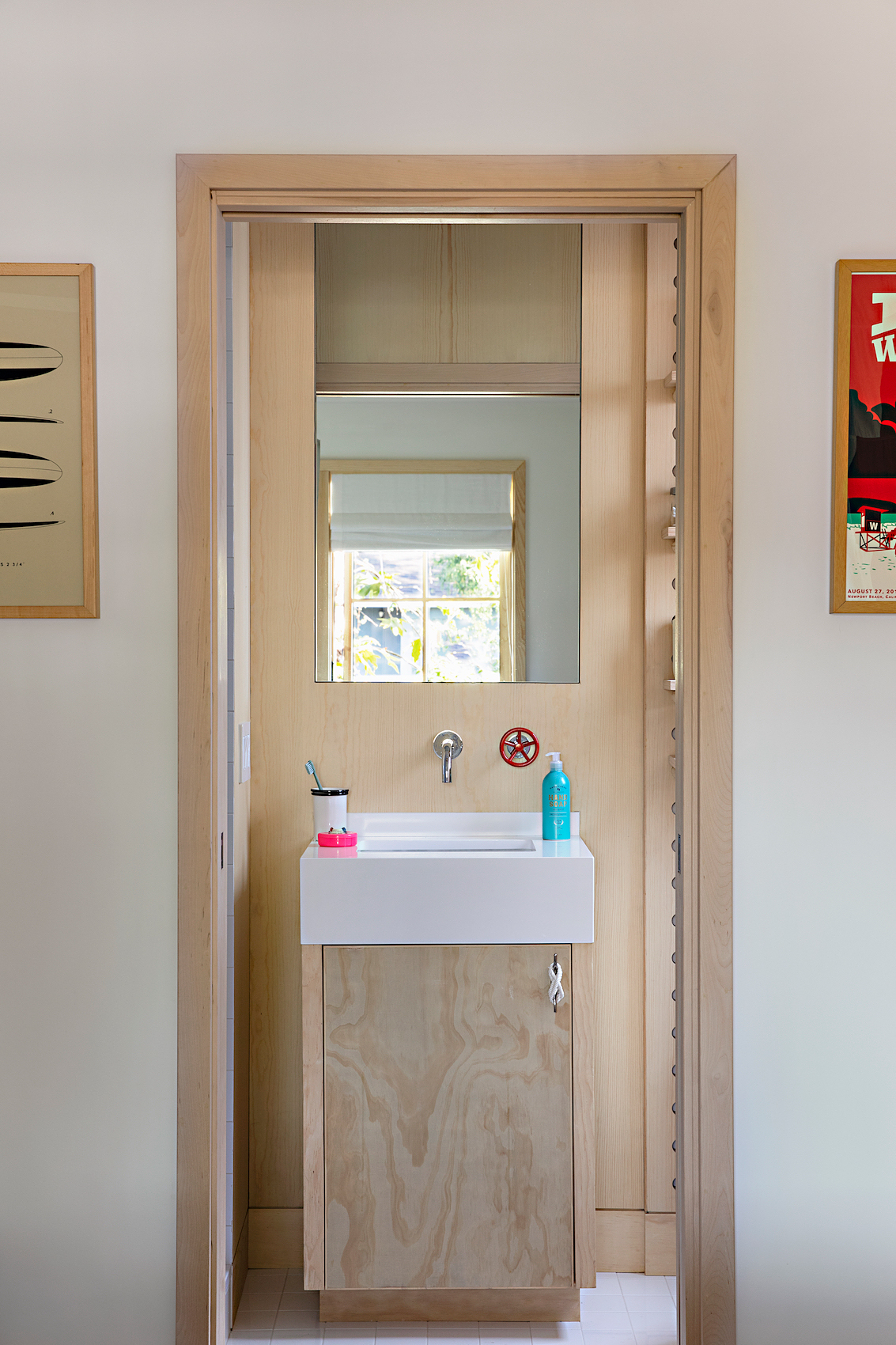 Powder-coated pendant lights, cast-iron sinks, and peacock blue tiles are some of her go-to moves. These features can easily transition into guest bathroom mode, but more important, they encourage a sense of levity and the ever-important pursuit of self-care. Plus the rooms look good amid the getting-ready-for-school chaos. Ahead, the designer shares her tips for creating a far-out space that brings the coastal vibes year-round.