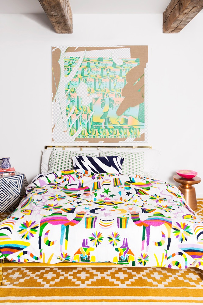 But, honestly, our home is full of leftovers. I like to live with my designs before bringing them to the masses to make sure they work well and are practical. So everything from bath mats to pillows to poufs are from my line. In my house, I have a lot of the Mirah tables because I wanted to make sure they could really hold up to wear and tear. My blankets and throws are regularly machine washed. Sometimes you take a sample home, and you realize it just won’t work.