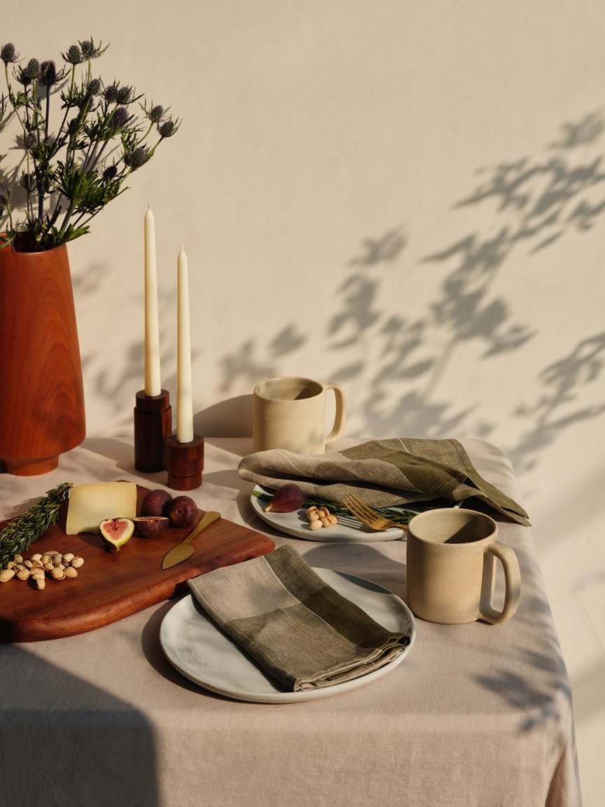 Heather Taylor Home’s fall-winter drop for West Elm offers the same versatility. Her signature gingham throw pillows, this time in beige and hunter green, will keep your sofa cozy 24-7. And the red-and-cream–plaid table linens, while perfect for a festive tablescape, can still jazz up a normal lunch in February. We’ve already added the checked quilt to our carts.