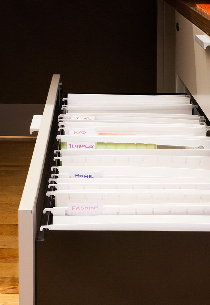 Set-up your file cabinet (or file box) the way your mind works—by topic, by month, whatever speaks to you—so you’ll be more inclined to use it.