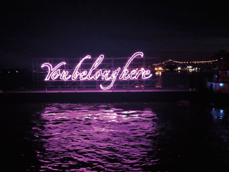 Snap a selfie with the giant world map as a backdrop in this fun space covered in primary colors.