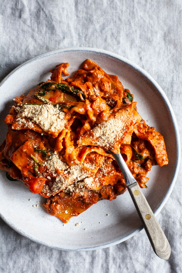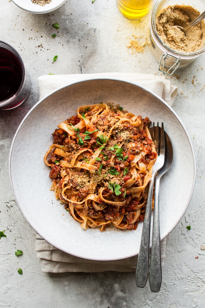 This protein-packed vegetarian pasta recipe from Lazy Cat Kitchen comes so close to the real thing that you won’t even notice the meat is missing.