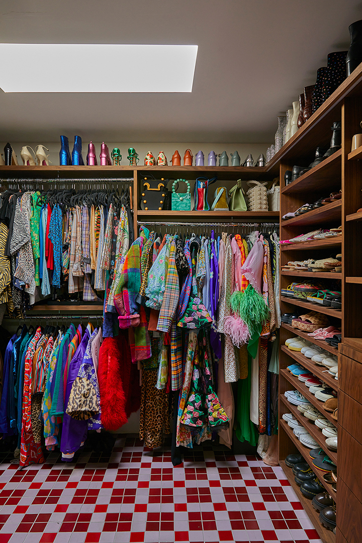 Jones curated a renovation mood board filled with chromatically confident interiors and heady patterns reflective of her love of vintage fashion—old photos from the homes of Gloria Vanderbilt, Diana Vreeland, and Diane von Furstenberg, and ’60s-and ’70s-era design magazines. Merrill was all in: “Brynn really encouraged us to lean into unusual color combinations.”
