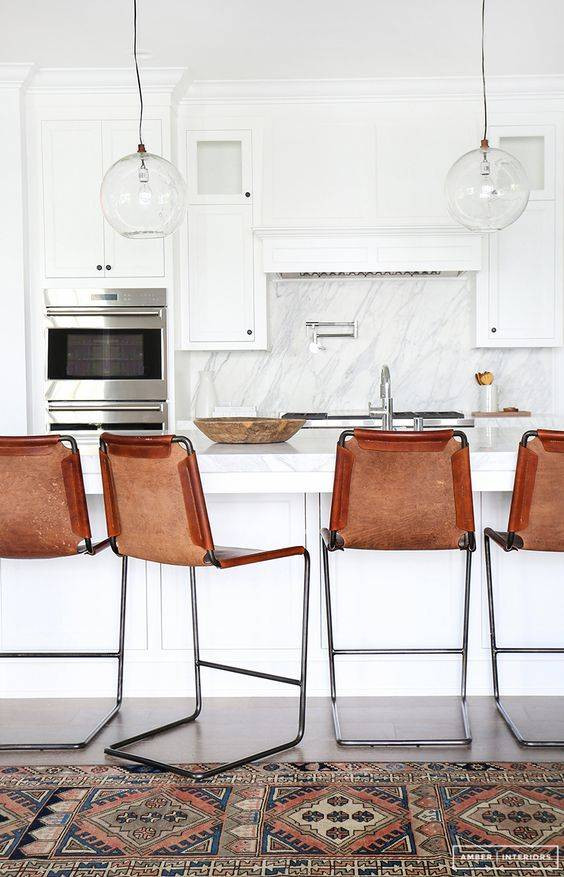 Pair midcentury stools and a vintage rug together in a modern styled kitchen to make a statement no one can ignore.