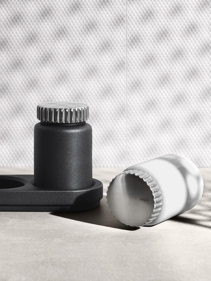 So instead, I’ve been carrying the same plastic Home Goods set from apartment to apartment, until one finally cracked. Then I resorted to a disposable grocery store version for the following couple of years. That’s until I was gifted a set from the Danish brand Vipp. (The family-owned company has a loyal following in Europe, and its first product, a pedal bin, is in the permanent collection at the Museum of Modern Art in New York City, but Stateside, Vipp is still relatively unknown.)