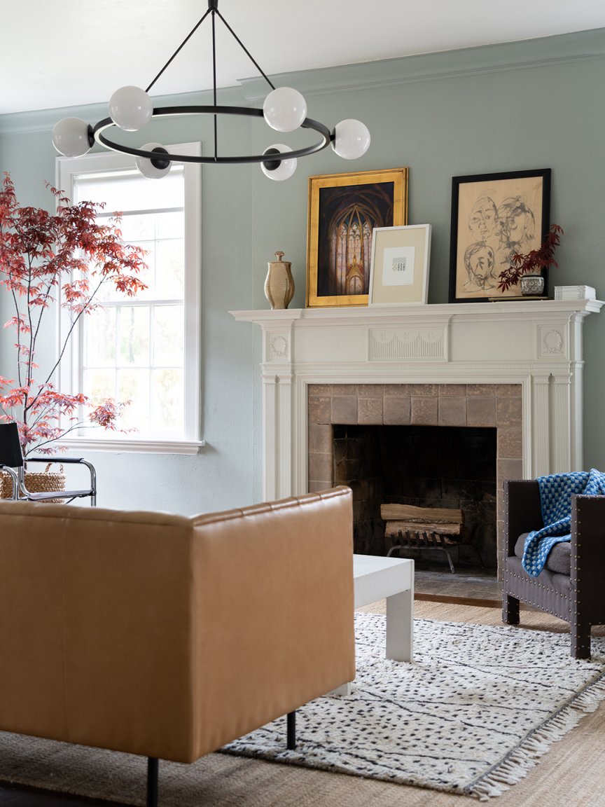 The not-so-alluring parts? Installing an HVAC system (the house didn’t have central air), rewiring all the electrical (the old knob-and-tube wiring wasn’t safe), and removing the carpeting in about one-third of the rooms. All three of these functional upgrades came in at the top of the couple’s budget, so when they could tackle a DIY to save money (like priming the office walls for wallpaper), they did. In addition to capturing the transformation for the First Time Fixer series on Magnolia Network (the episode dropped on Discovery+ this fall), Walker talked to Domino about the good and the gritty of their renovation process.