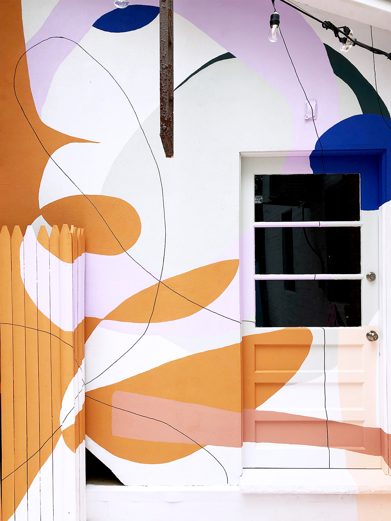 Drawing squiggles isn’t just for kids. Thick black swirls, like the ones in this stairway, designed by muralist Ashley Mary, can be ultra-elevated when implemented on an extra-large scale.