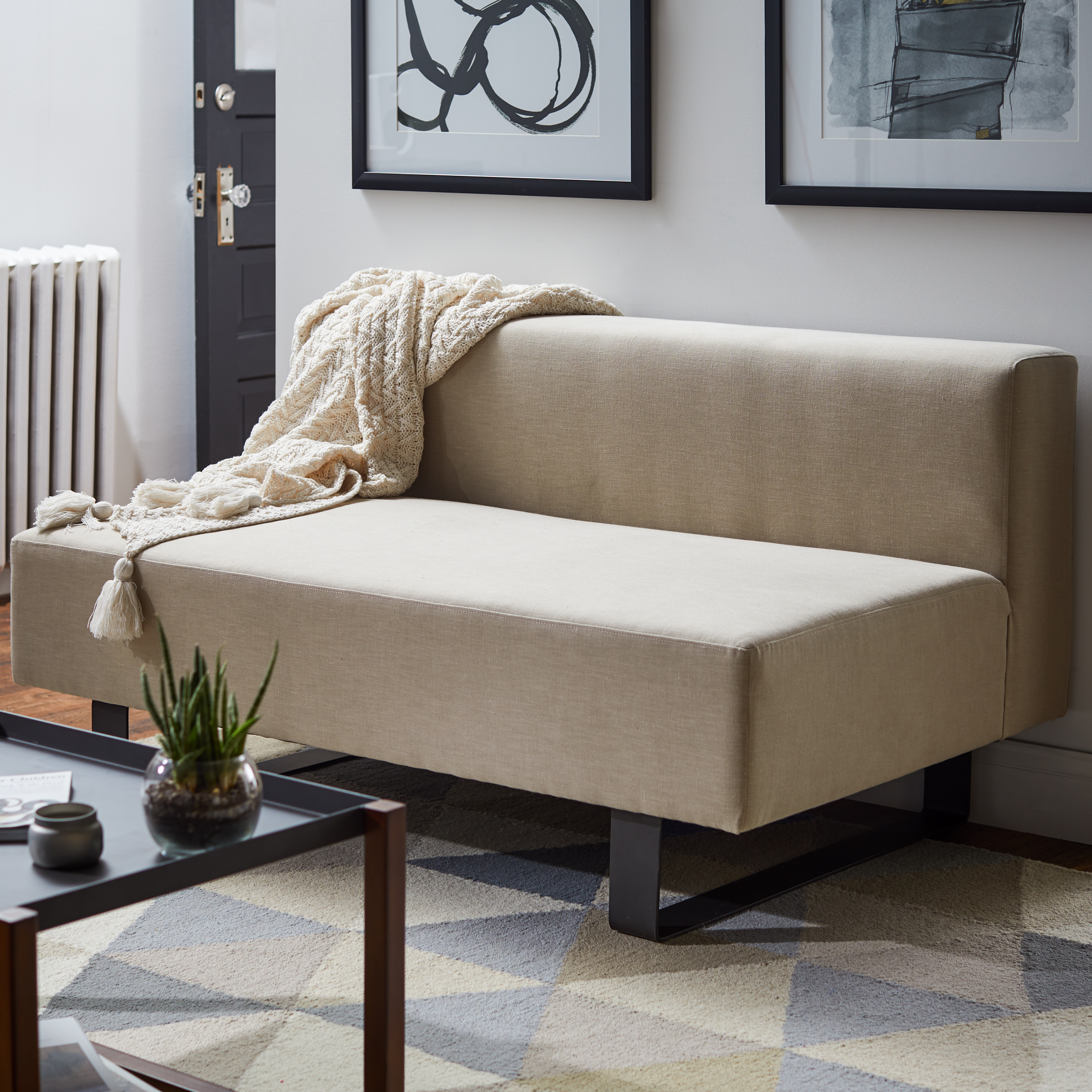 A sofa is obviously a must, but most are expensive and big. This option toes the line between a loveseat and three-seater, offering just enough room for you to spread out when solo or for guests to lounge around without feeling crowded in. Armless styles also save more space than you might think.