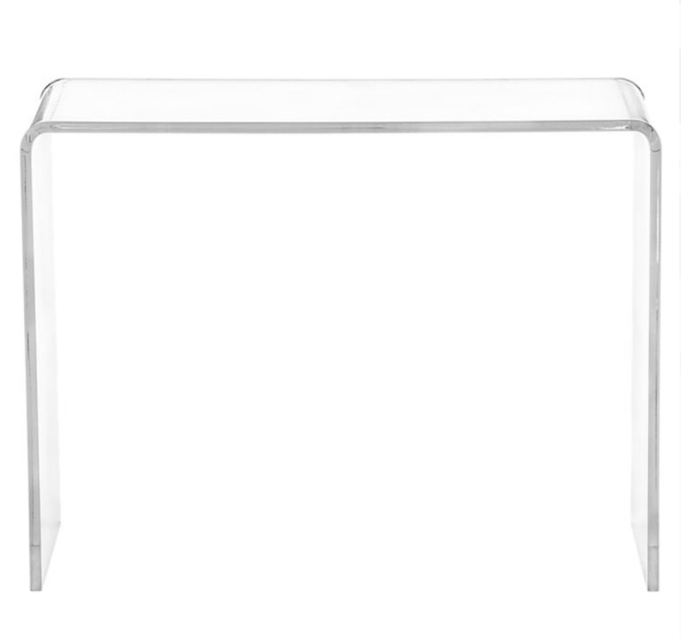Make a first impression count with this acrylic console table. Underneath is an underrated addition of a braided area rug that feels amazing the moment you walk in.