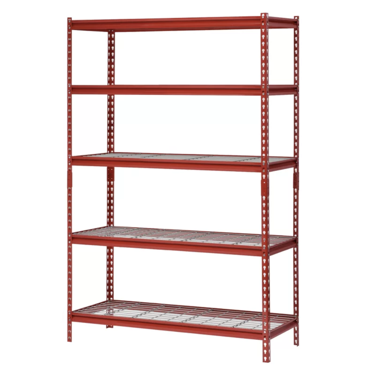 Top this red-hot shelving unit with your go-to pantry staples (and a few guilty pleasures).