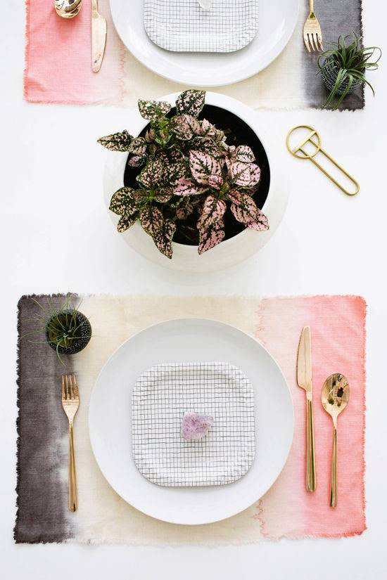 DIY’ing your own placemats gives you the opportunity to get creative with the color scheme. Head to a local fabric store and purchase a large cut of linen, which you can later segment into rectangles.