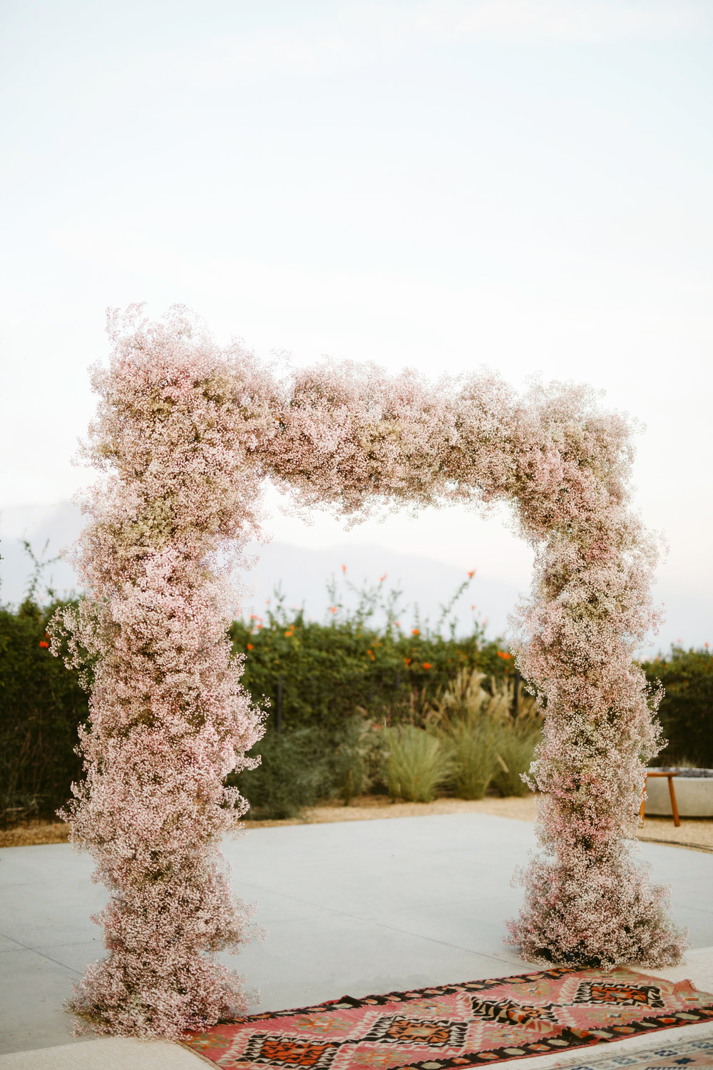 Mandy Moore’s epic backyard wedding was proof of this. The actress tied the knot beneath a blush-tinted arch, comprised of a massive structure of bunched baby’s breath. Tinted in soft pink, it provided a refreshing twist on the classic filler.