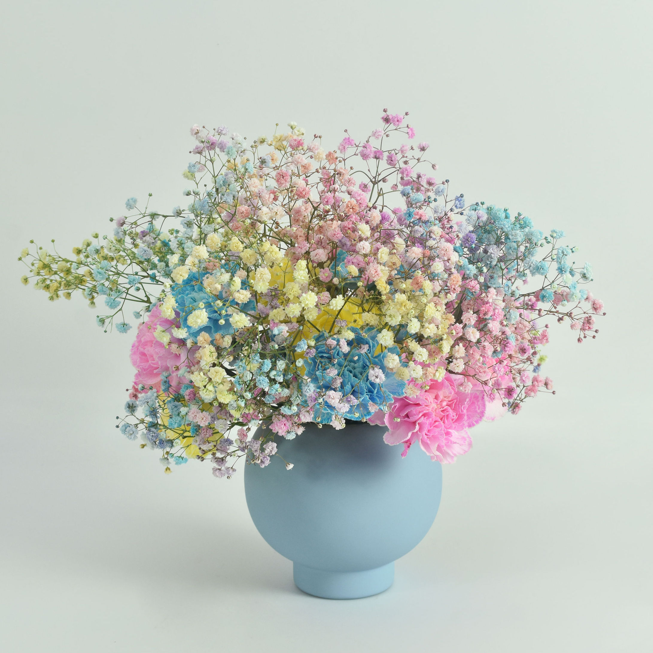 According to Caroline Bailly of L’Atelier Rouge, baby’s breath is the prime contender for this trend. “Either rainbow or pink baby’s breath, displayed as a mass, has made a tremendous comeback,” the floral designer says.
