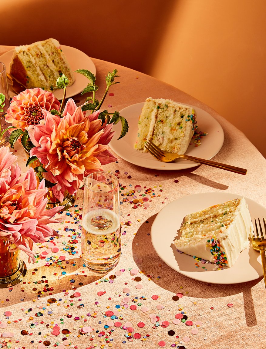Last year, there were over 300,000 searches for “rhinestones” and “polka dots”—everyone was, in fact, partying like it was 1999. Now, couples are ditching the fanny packs and butterfly clips for disco glamour. If you’re not looking to go full Studio 54, consider chartreuse tableware or bold bubble lettering on the invites for a punchy throwback.
