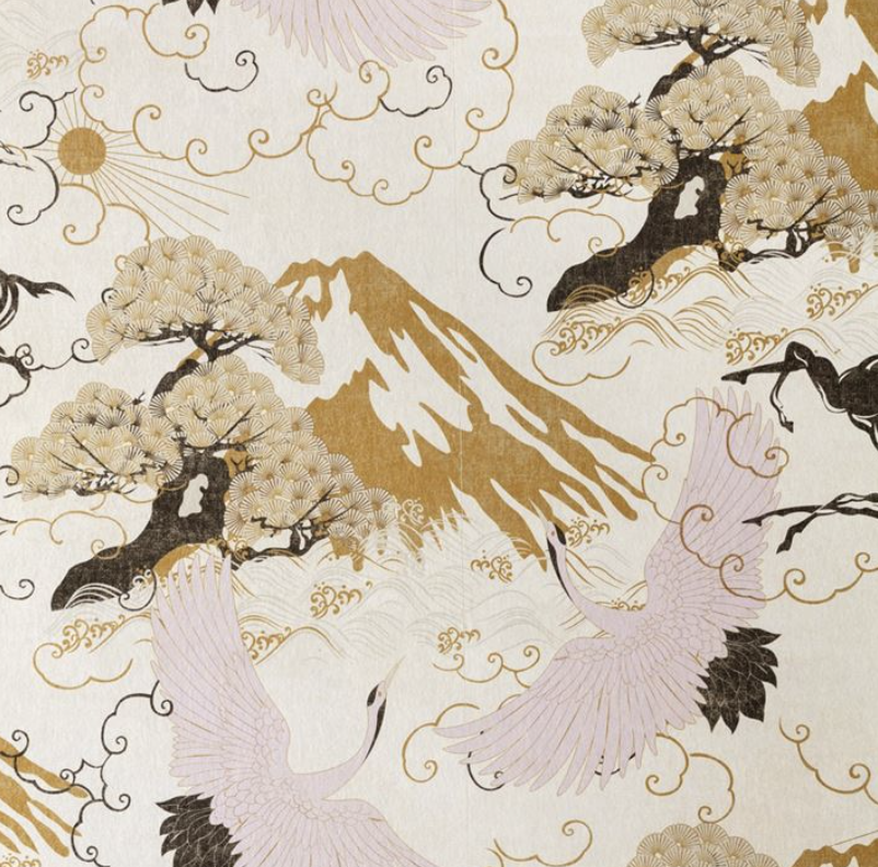 These days she renders her jungle-inspired prints (when there’s an opportunity to add birds to a design, she takes it) into silk rugs and wallpaper. The latter can be found in almost every room of her house, expertly and delicately hung by her go-to installer, Barry, who insists on being on-site even when the panels are being cut. “He gets quite nervous about it,” she says with a laugh. In the main living room, Wendy swathed the walls in her Mandela treatment, which features a slim black tree set against a pale gold backdrop. The birds perched on the long branches appear as if they’ve leaped onto the surface of the Zebra Leopard Palms rug on the floor—a piece she created as a nod to the flamboyant sets of Tony Duquette.