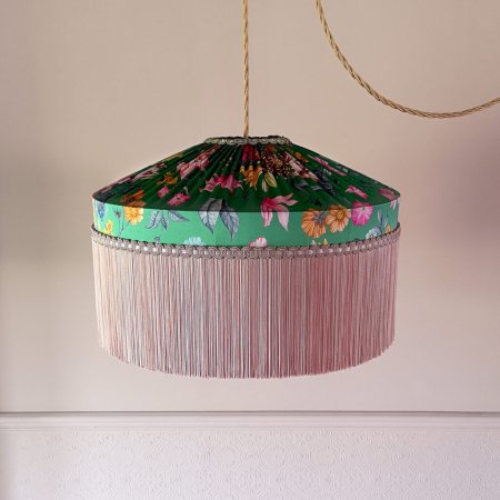 In the main bedroom, a flamingo pink pendant lamp by Coldharbour Lights plays off the opulent accent wall that’s covered in Wendy’s shimmery, scenic Joie de Vivre treatment. “I think that’s the key to a bedroom,” she says, “having a sanctuary to go to where you can hopefully rest and be refreshed.” She worked green into the family bathroom as well, swathing the wainscoting in an almost-lime hue and painting the tub to match. “Green works well in a bathroom, because I feel like there’s always too much water energy,” she continues. “It balances everything.”