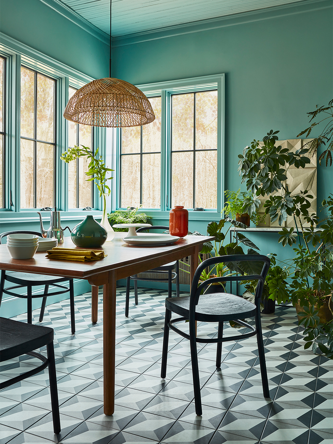 Doorknobs, baseboards, ceilings, doors—swathe every detail in the same color for an all-encompassing effect. Happy hues in cooler tones (mustard yellow, mauvy pink) feel timeless and right for a more traditional setting.