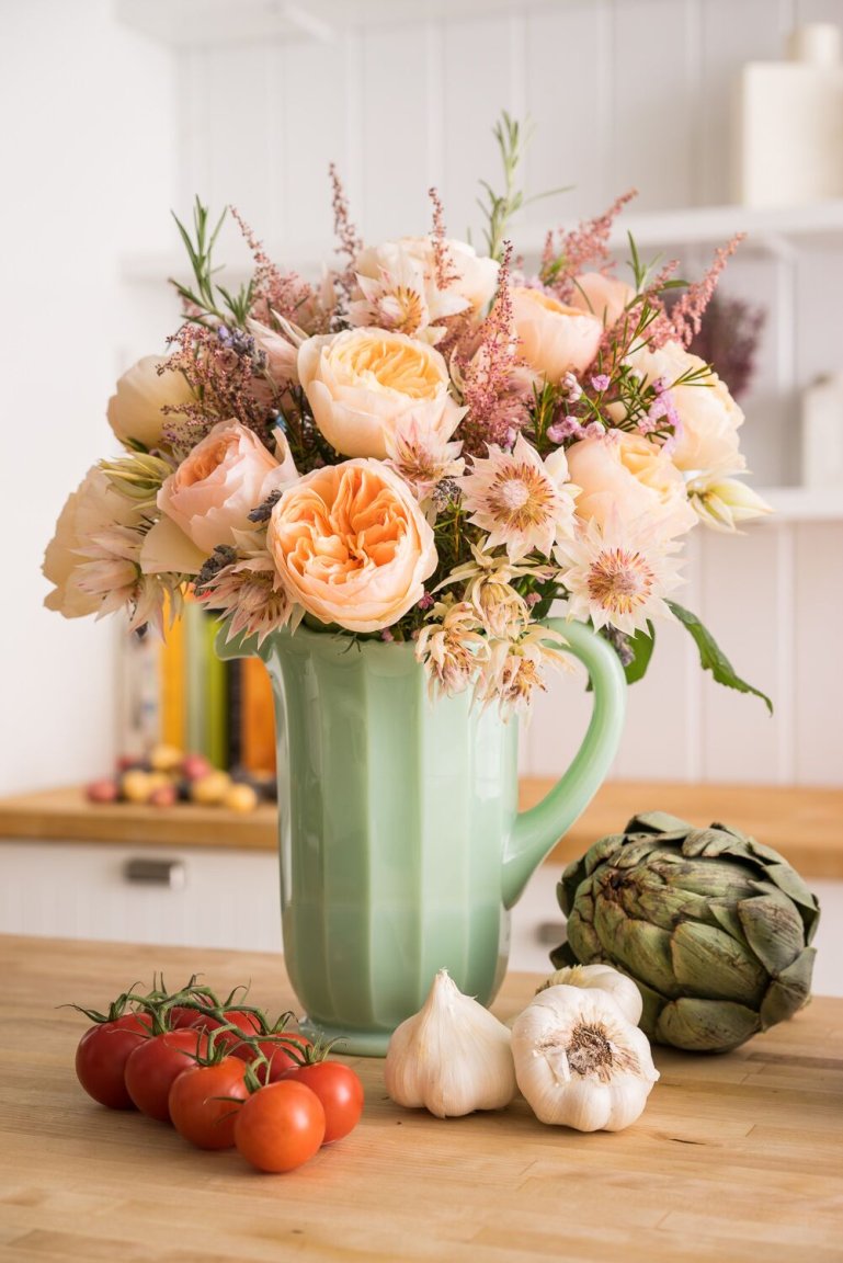 “I grow oodles of herbs, especially ones you can’t easily find at a store, so I’m always gathering them into a loose, fragrant bouquet to bring to a friend’s house instead of flowers,” says Copeland. She’ll pair the bunch with a dreamy peony or a blooming rose from her garden for an unexpected touch.