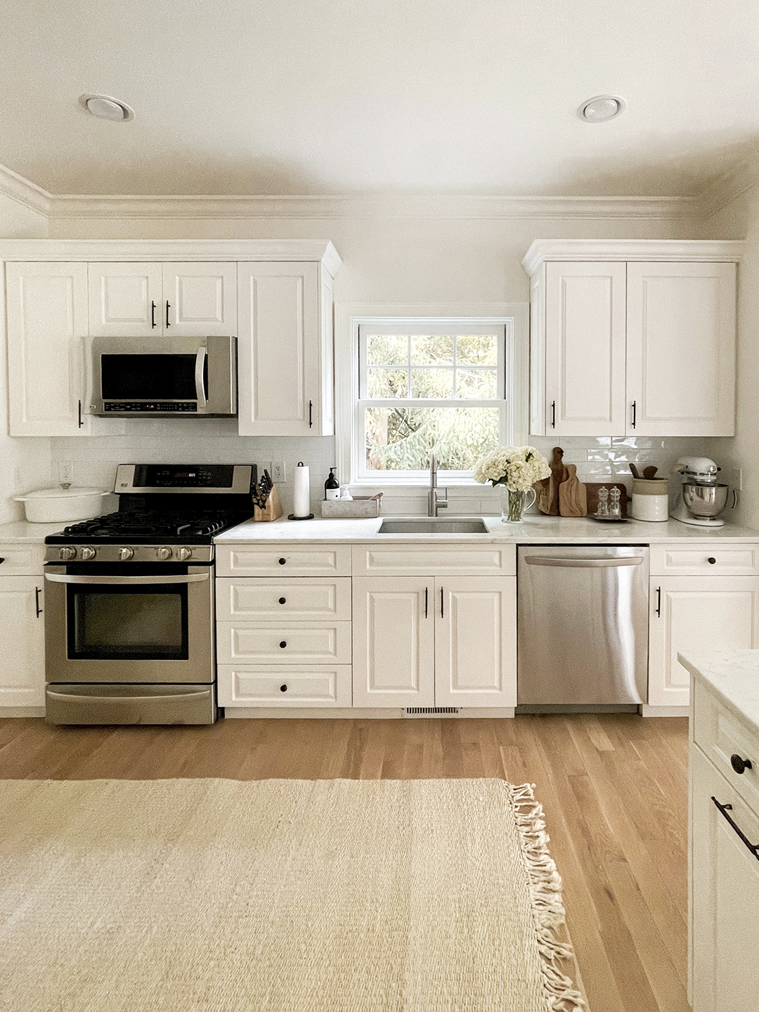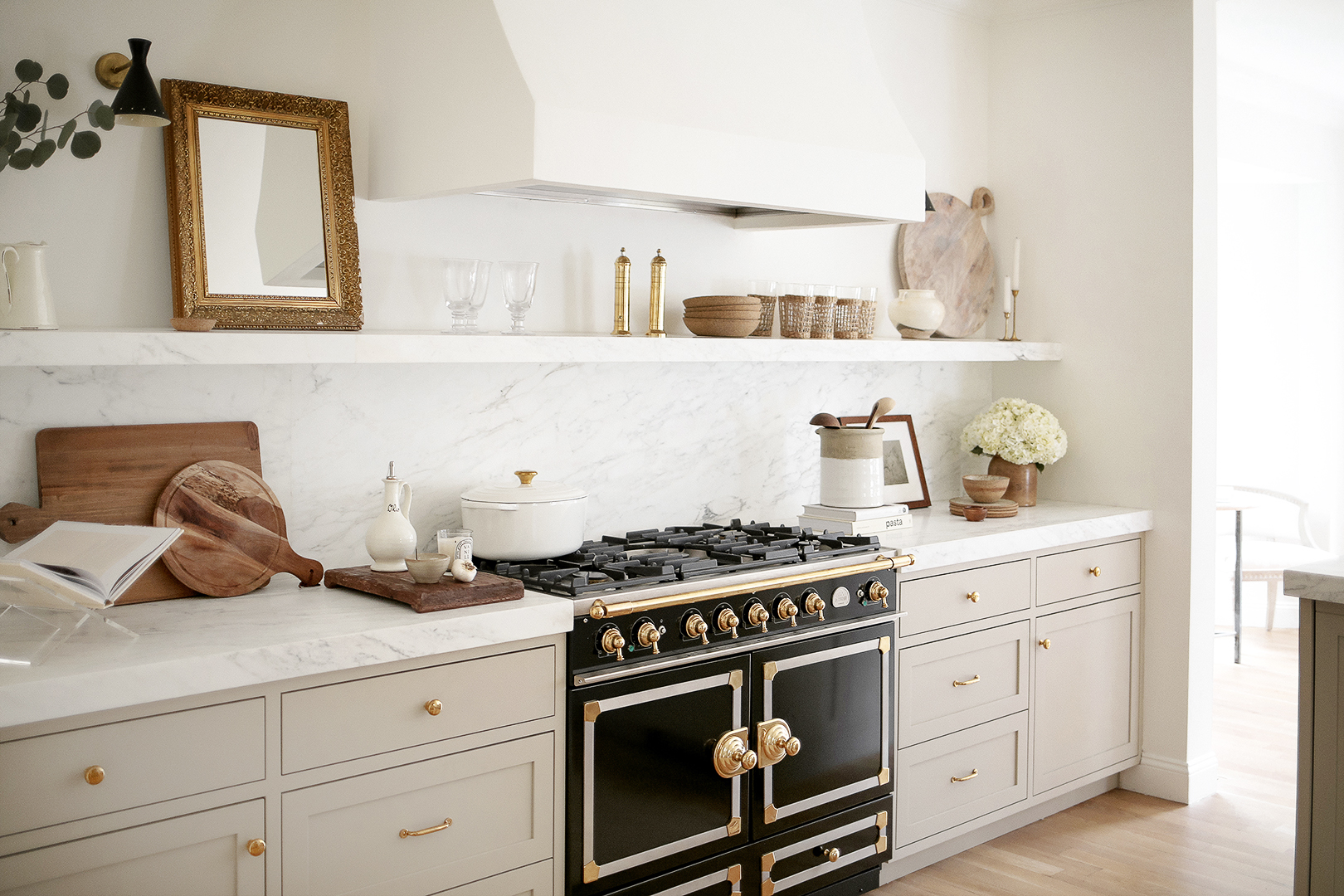 Even Kat Jamieson can admit the kitchen in her Connecticut home was perfectly fine when she and her husband, Thomas, left their New York City apartment and bought the place a year and a half ago. But perfectly fine didn’t mean perfect for her. “We were very lucky; the house is only 11 years old,” says Kat, the founder of With Love From Kat, a lifestyle website and Instagram account where she posts about fashion, decor, travel, beauty, and more. The 186-square-foot space’s overall farmhouse aesthetic was right up her alley, but the white cabinets read as stark, and the decade-old stainless steel appliances were bulky. “I really wanted something that felt less cookie-cutter,” she explains. “Especially being a former city person now living in the suburbs, I was like, no, I can’t have this typical, sterile white kitchen.”