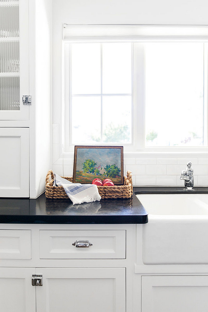 There’s a whole spectrum of white paint colors out there, some better suited for millwork than others. For this space, designer Whitney Filmoeatu landed on Farrow & Ball’s Schoolhouse White for the lower cabinets. Her reasoning: It’s a shade or two darker than the walls, which are covered in White Dove by Benjamin Moore, so it adds dimension to the room.