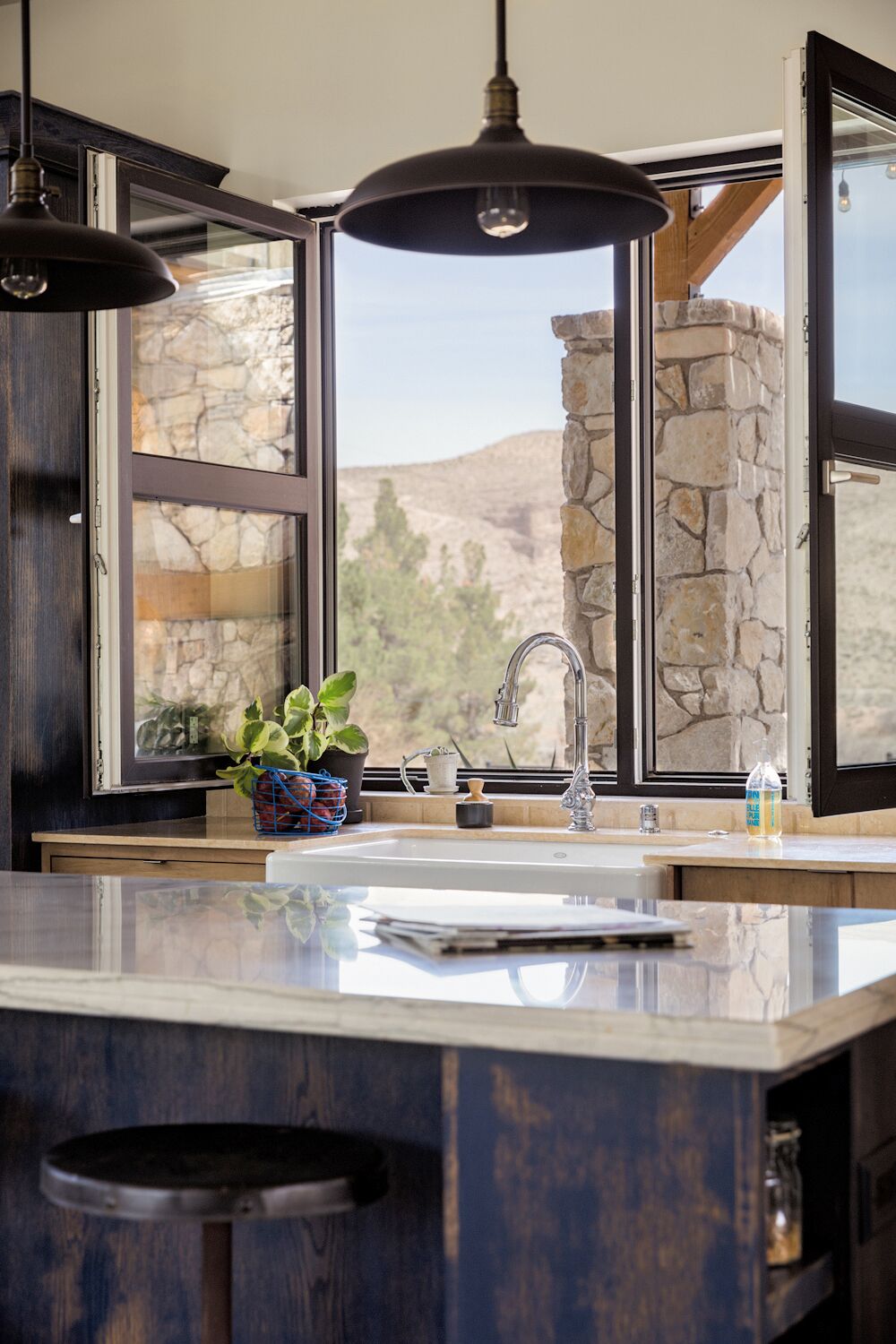 “You’ll want to make sure you aren’t blocking any exterior walkways or cutting into a patio space once those windows are open. Similarly, you’ll want to consider how a window functions on the interior of your home. For example, a double hung over a kitchen sink might make it difficult to operate, and a window that’s high up and not within easy reach might not need to be operable at all,” explains Marvin.