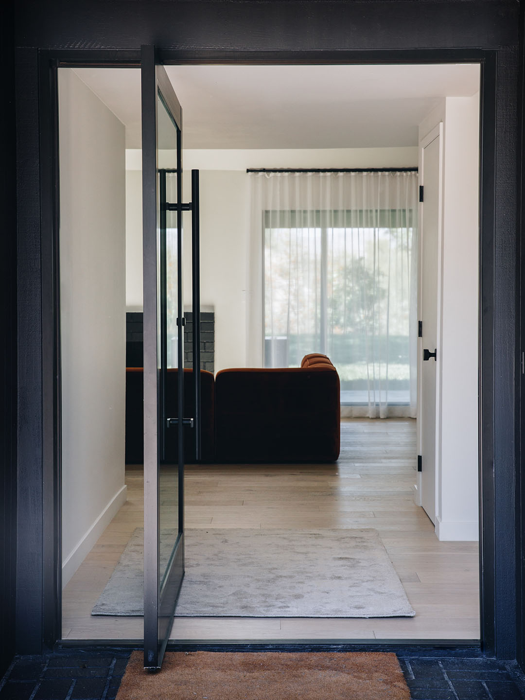 One of the most notable transformations in the entire remodel is undoubtedly the home’s exterior, now a gutsy black—not a color often associated with tranquility, but the one they were drawn to nonetheless. “It was definitely a choice,” Naude says of the hue (After Hours by Backdrop), which was inspired by the 18th-century Japanese art of shou sugi ban, the burning of wood to the point of char in order to preserve it for decades to come.