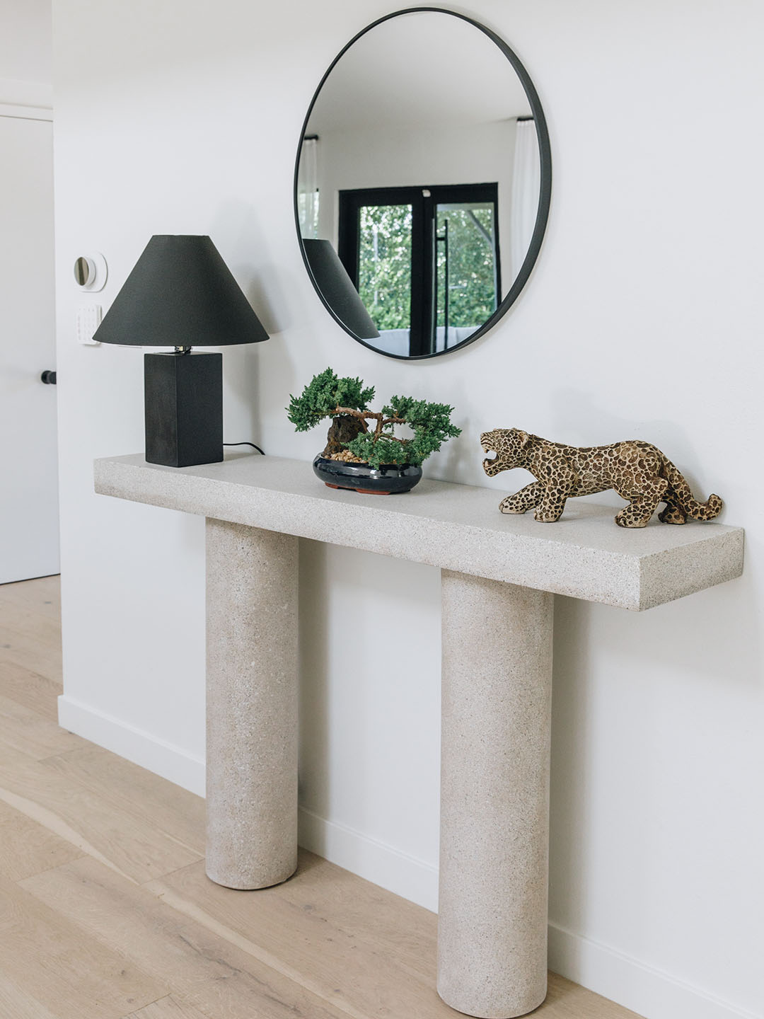 Determined to keep their budget in check, the couple took on the colossal task of helming the general contracting for the renovation, a job that Naude sincerely hopes he “never has to do again.” More fun was dreaming up the home’s design, which was inspired by their quest for tranquil vibes (they even nicknamed the home the Zen Den); Naude’s Mexican heritage; and a trip to Naoshima, Japan, where they became acquainted with the work of architect Tadao Ando. “The world can be chaotic,” explains Naude. “It’s a pandemic, there’s all these other things going on—we wanted the house to have this sense of calm and peace to it.”
