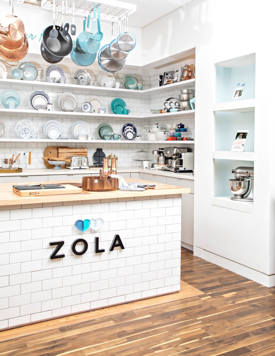 Amidst all the chaos, Zola, the one-stop online shop for wedding planning and registry, is out to streamline the process with an IRL pop-up store in New York City’s Flatiron District. The store plans to keep its doors open through June when the planning rush dies down.