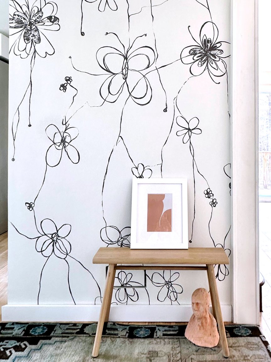That’s where I found Come Back as a Flower, a whimsical masterpiece by artist Hera Ford. I instantly fell in love with the soulful, free-style drawing. It evoked the emotional memory of that Weinrib wall, and a younger me in turn. As I waited for the sample to arrive, I flirted with the brand’s Instagram page as if it was a new and unexpected romance—I might have even slid into their DMs; I was positive that this was the one.