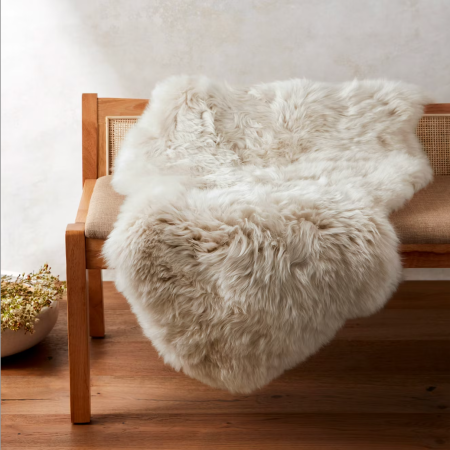 My advice is to always go real for the softest plush, and check if the brand sources or produces sheepskins sustainably; for example, Quince obtains theirs as a by-product of the meat industry. Rather than stark white, I tend to prefer a little color to lend a more natural feel, as in Jenni Kayne’s version (but you do you). And, since the pelt can get matted if you’re regularly sitting on it, I appreciate that brands like Overland send a little brush, too, for regular grooming.