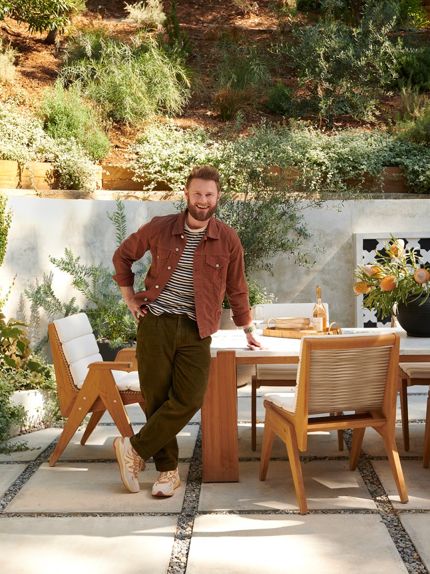 When Bobby Berk first laid eyes on the backyard of his Los Angeles design firm’s HQ, two words sprang to mind: sad and boring. Massive concrete slabs dominated the limited square footage, hemmed in by a drab retaining wall. The existing plantings and small patch of grass felt random and purposeless.