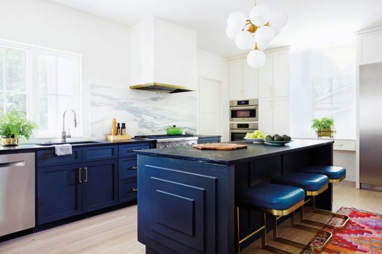 Ironically, blue is not Rachael Petach’s favorite color (it’s mustard yellow). But when it came to decorating the Hudson Valley, New York, tasting room for her black-currant liqueur, C. Cassis, she couldn’t think of a better shade. “Blue feels like it connects to the calming sense of the beverage itself,” she says. “Also, black currants are a phenomenal natural dye, and when they develop, they turn into this really perfect, kind of soft middle blue, the color of our label.”