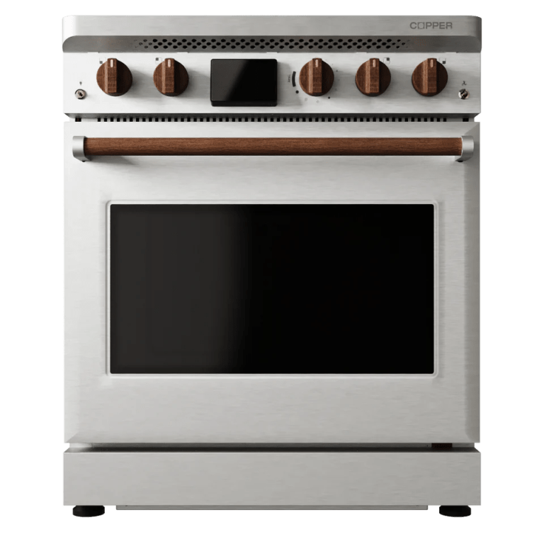 I opted for the stainless steel to match my other appliances and also upgraded to the California Black Walnut knobs and handle (made from sustainably-sourced wood) which are a near-match for my butcher block countertops. I love that the burners and oven are still controlled by knobs, unlike many newer high-end appliances that rely on large display screens that can be difficult to navigate and quite messy while cooking, resulting in a user-friendly design with a little learning curve. When I spoke with Mitch Heinrich, Principle Designer at Copper, he put it this way: “People cook with their families and not with their phones.”