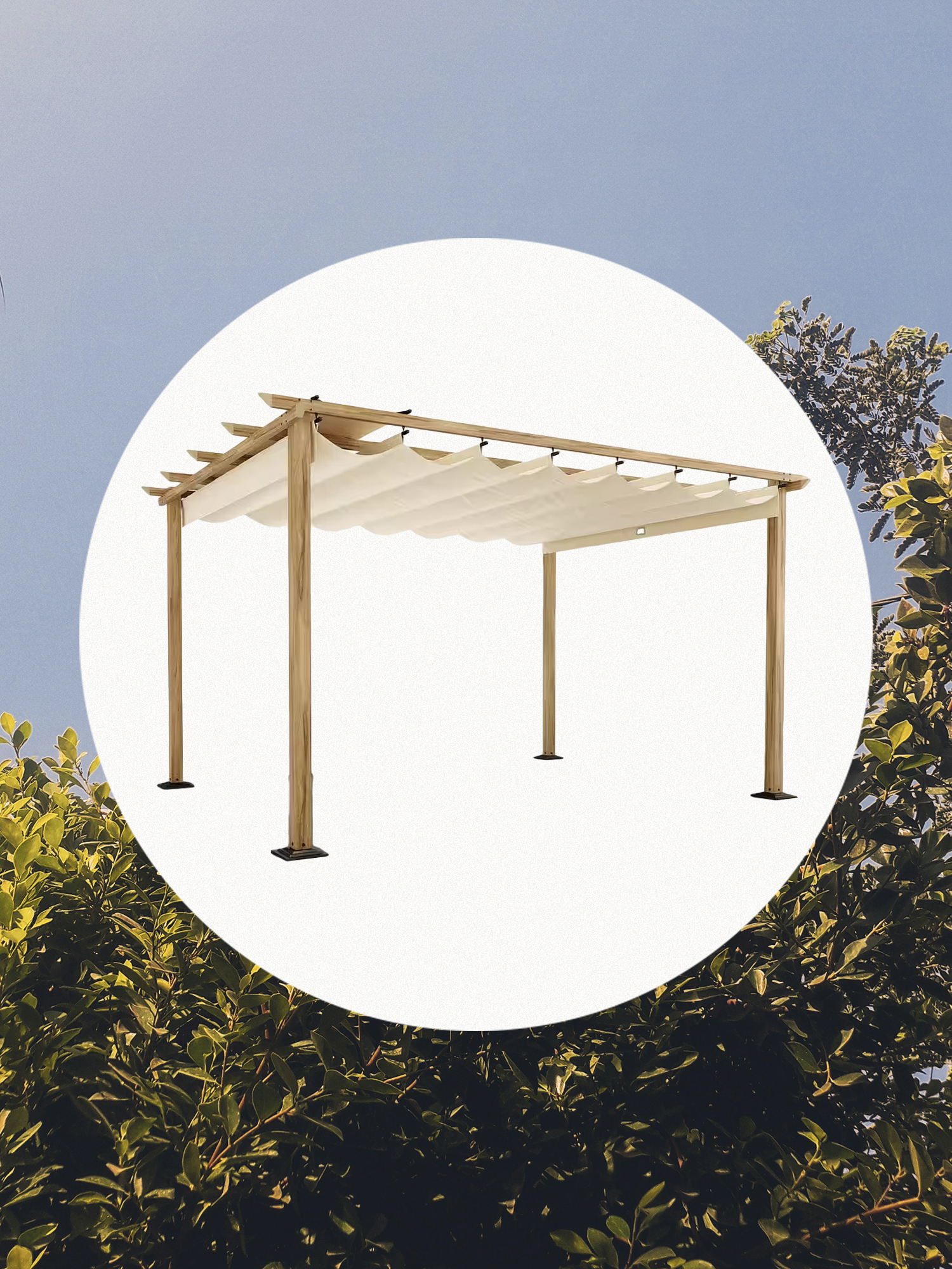 Made from rust-resistant aluminum that has a wood-grain look, this pergola is equipped with a waterproof, UV-resistant, and fade-resistant cover that can be adjusted via hooks on a track. Reviewers particularly like that there’s a panel that covers the shade to avoid excessive pooling of water. They also remark positively on the fact that the structure is lightweight and easy to assemble, and that it stands up to rainstorms and a certain level of wind. It’s just $359 while on sale, and should last for years to come thanks to the solid construction (no wood maintenance here).