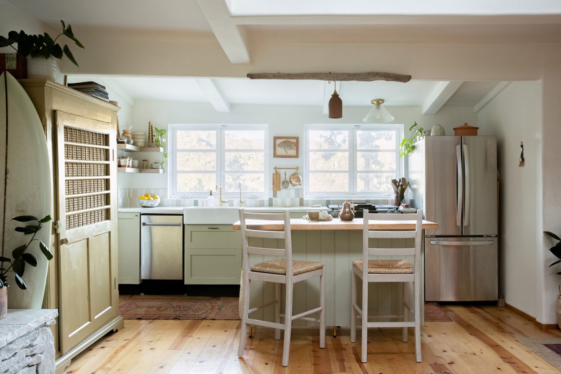 Homeowners and Canyon Ceramics Co. founders Danielle Hutchens and Dana Seagraves got scrappy with their kitchen renovation, piecing together the backsplash tile from samples and sourcing their large pantry cabinet from Facebook Marketplace. When we asked them about their plumbing upgrade, they revealed their classic, charming faucet is a Glittran product from IKEA—and it’s only $118.