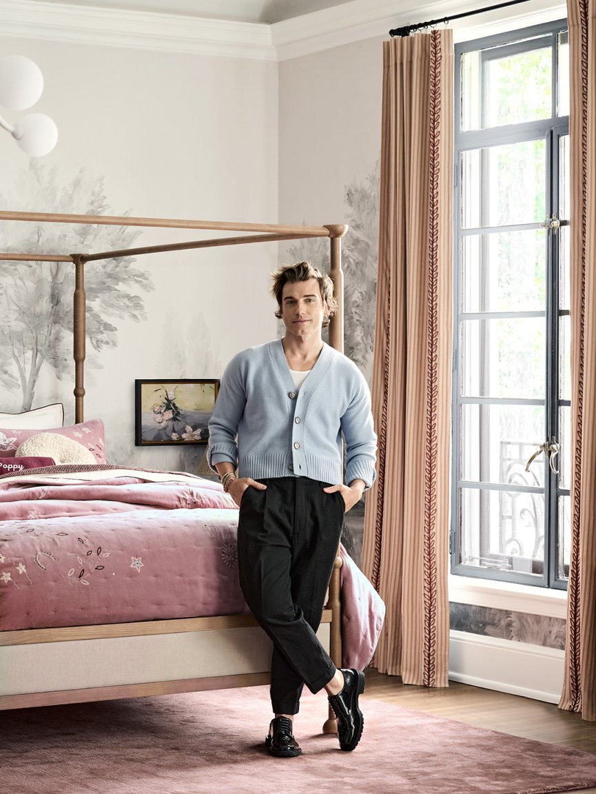 Back when Brent’s kids were babies, he struggled to find the perfect glider. “I never could find one that I could rest my head on when I was feeding and that had the perfect arm height for bottle-to-mouth ratio,” he says. So he created the chair he wishes he’d had in their nursery, and it features a supersoft velvet upholstery that only makes bonding time even cozier.