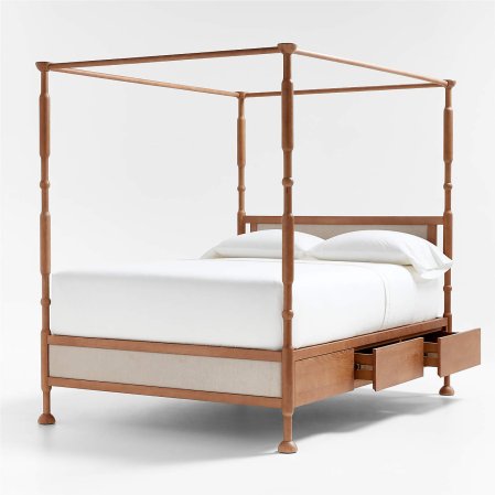 Rachel Hazelnut Wood and Upholstered Full Kids Canopy Bed with Storage by Jeremiah Brent (Full), Crate & Kids