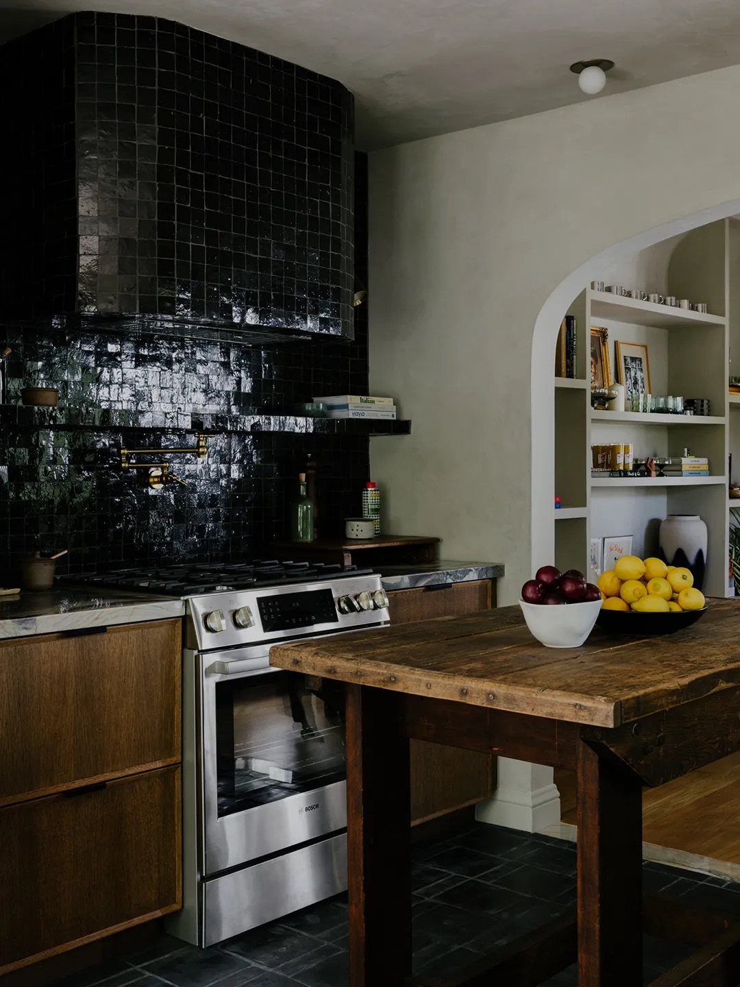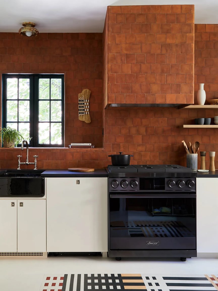 Love all things monochrome? Give this look a try. Austin Carrier and Alex Mutter-Rottmayer of design firm Hommeboys Interiors swathed the walls of this California kitchen in Zia Tile’s zellige in the color Cadmium, which perfectly matches the cabinets drenched in Dylan by Portola Paints.