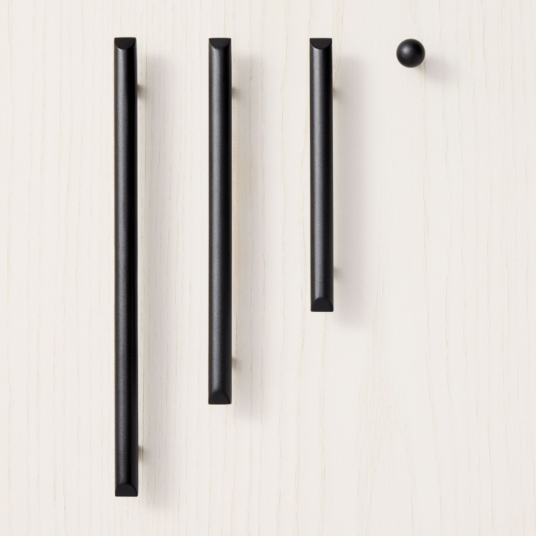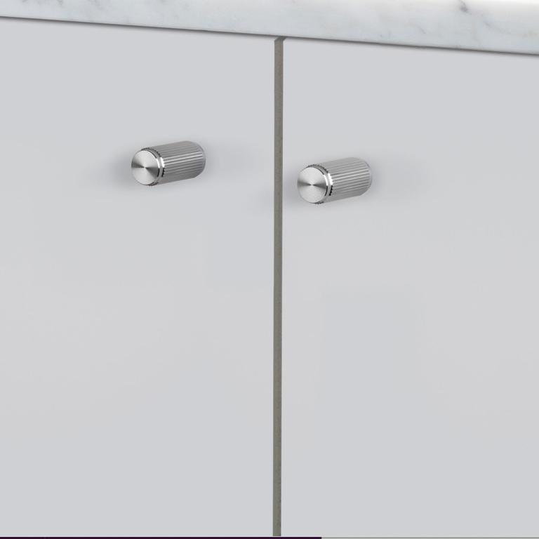 Start by accounting for the length of your cabinets. For smaller nooks, like spice pull-outs or slim doors that hide cutting boards, go with knobs that are 1 inch in diameter or smaller. Otherwise, knobs that are between 1 ¼ and 1 ⅜ inches will suffice. That said, there are benefits to supersizing your knobs. Not only does it make them easier to grab, but the visual effect (especially if they’re painted the same color as your cabinet doors) is showstopping.