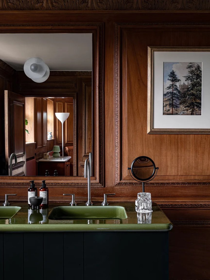 Dorothée Meilichzon went wild with lava stone from Pyrolave in the bathrooms at Cowley Manor Experimental. Each space stars a different hue, but this classic red might be our favorite. She didn’t stop there: The side tables and bar in the lobby are also made of lava stone, reminding us that kitchens and bathrooms are just the beginning for this trend.