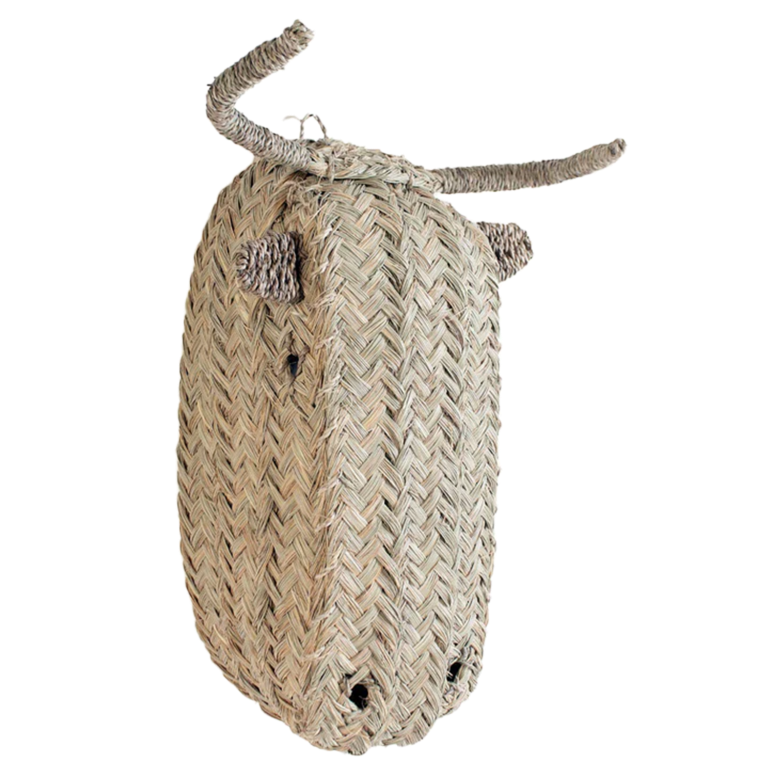 Lyon’s room—which Celeste accesses to get to hers—has continued to evolve as he’s gotten older. With the bed den here to stay, wallpapering the ceiling was “an afterthought,” according to Sarah, but the design choice gives the space a circuslike quality. In addition to stripes, the rattan animal heads have become something of a theme, with the family now collecting them on vacations. “If Lyon sees them somewhere, we’ll bring one home and it’s like he has that memory on his wall,” says Sarah. The armchair has also rotated around the house but finally found its place by the window for book reading. Sarah added a throw as a seat pad for a pop of color—and to extend its life span: “Let’s be honest, kids cause a mess, but the results are always creative!”
