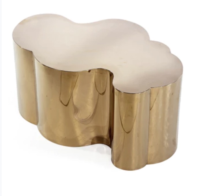 Moore recently posted on Instagram a sweet pic of her 6-month-old “baby pterodactyl contemplating life” as he giggles on the living room floor of her family’s Pasadena, California, home. What’s so funny? Apparently, his reflection in the cloud-shaped mirrored coffee table. By the looks of it, someone flipped the stainless steel piece from Statements by J on its side so the little one could get an eyeful.